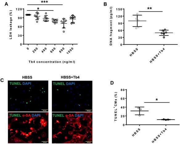 Figure 1. Tb4 protects hiPSC-CM against hypoxic injury in vitro.