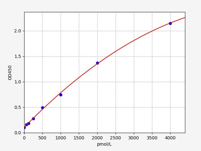 STD.(pmol/L) OD-1 OD-2 Average 0 0.103 0.107 0.105 62.5 0.156 0.16 0.158 125 0.182 0.188 0.185 250 0.269 0.277 0.273 500 0.482 0.496 0.489 1000 0.733 0.755 0.744 2000 1.35 1.39 1.37 4000 2.12 2.182 2.151