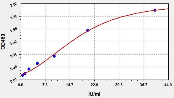 STD.(IU/ml) OD-1 OD-2 Average 0 0.109 0.113 0.111 0.625 0.175 0.181 0.178 1.25 0.237 0.243 0.24 2.5 0.399 0.411 0.405 5 0.608 0.626 0.617 10 0.868 0.894 0.881 20 1.811 1.863 1.837 40 2.538 2.612 2.575