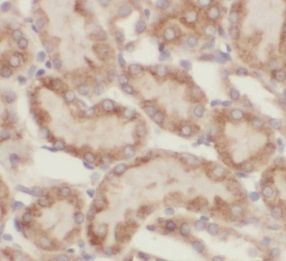 Immunohistochemical analysis of paraffin-embedded human kidney tissue slide using FNab00646 (ASPH antibody) at dilution of 1:200