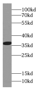 HeLa cells were subjected to SDS PAGE followed by western blot with FNab01257(CAPZA1 antibody) at dilution of 1:1000