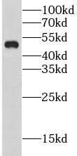 Jurkat cells were subjected to SDS PAGE followed by western blot with FNab01677(CHRNA5 antibody) at dilution of 1:500