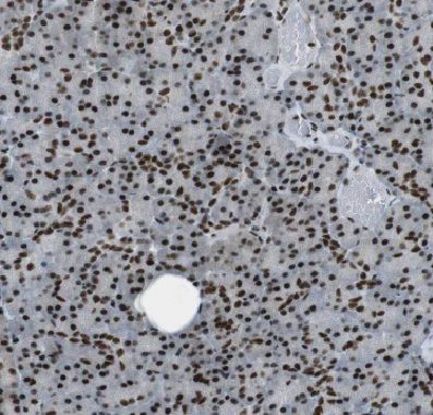 Immunohistochemistry of paraffin-embedded human pancreas tissue slide using FNab01872(COPS4 Antibody) at dilution of 1:50