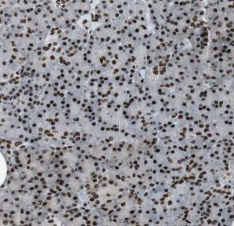 Immunohistochemistry of paraffin-embedded human pancreas slide using FNab02734(ELF1 Antibody) at dilution of 1:50