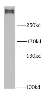 HeLa cells were subjected to SDS PAGE followed by western blot with FNab03161(FLNB antibody) at dilution of 1:1000