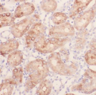 Immunohistochemistry of paraffin-embedded human kidney using FNab03620(GPT2 antibody) at dilution of 1:100