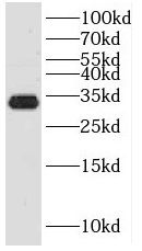 Transfected HEK-293 cells were subjected to SDS PAGE followed by western blot with FNab04631(KLK3,PSA Antibody) at dilution of 1:1000