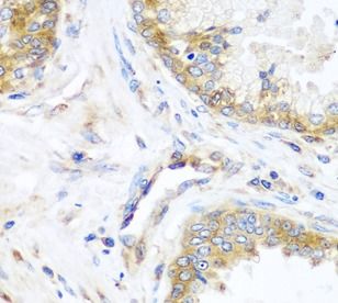 Immunohistochemistry of paraffin-embedded human prostate using FNab09561(YBX1 antibody) at dilution of 1:100