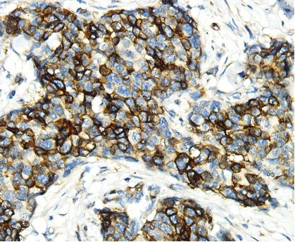 Immunohistochemistry of paraffin-embedded human breast cancer tissue slide using FNab11093(KRT7 Antibody) at dilution of 1:100