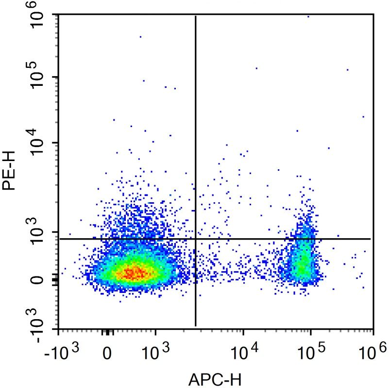 BALB/c murine splenocytes are stained with PE Anti-Mouse CD127 Antibody and APC Anti-Mouse CD4 Antibody.